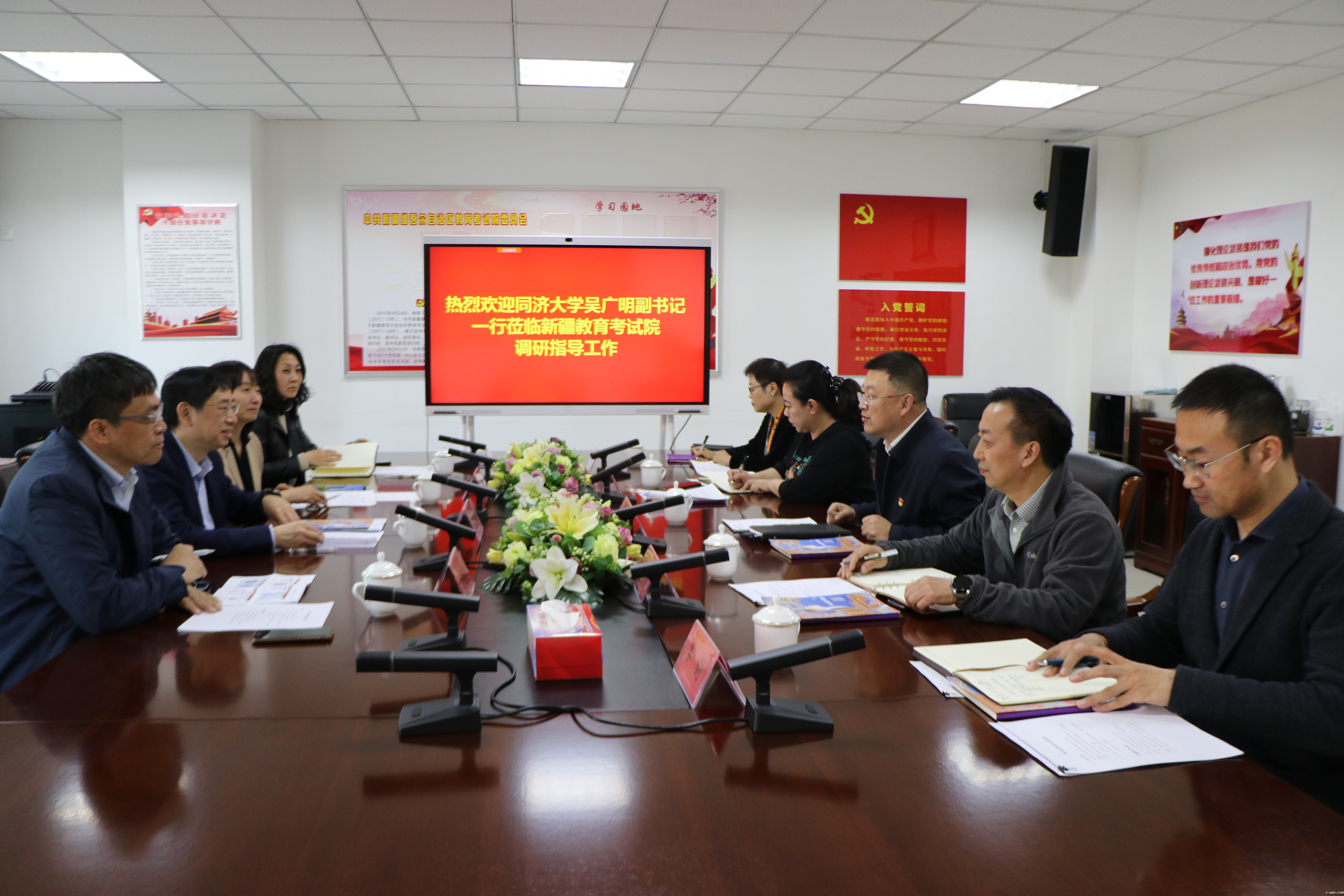 4月24日,同济大学党委副书记、教授吴广明一行来到新疆教育考试院调研、开展招生宣传,新疆教育考试院党委书记、副院长肖旭带领相关人员进行座谈交流。