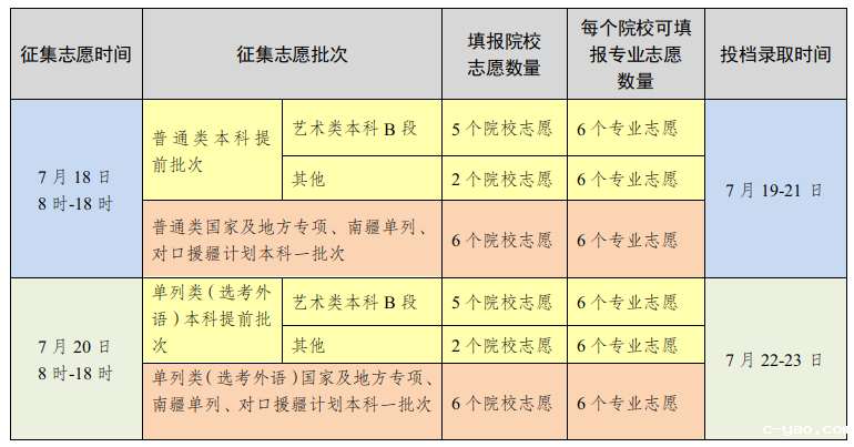 本次征集志愿具体范围及时间安排为:7月18日8时至18时,普通类本科提前批次,普通类国家及地方专项、南疆单列、对口援疆计划本科一批次未完成计划征集志愿,7月19日至21日投档、录取;7月20日8时至18时,单列类(选考外语)本科提前批次,单列类(选考外语)国家及地方专项、南疆单列、对口援疆计划本科一批次未完成计划征集志愿,7月22日至23日投档、录取。