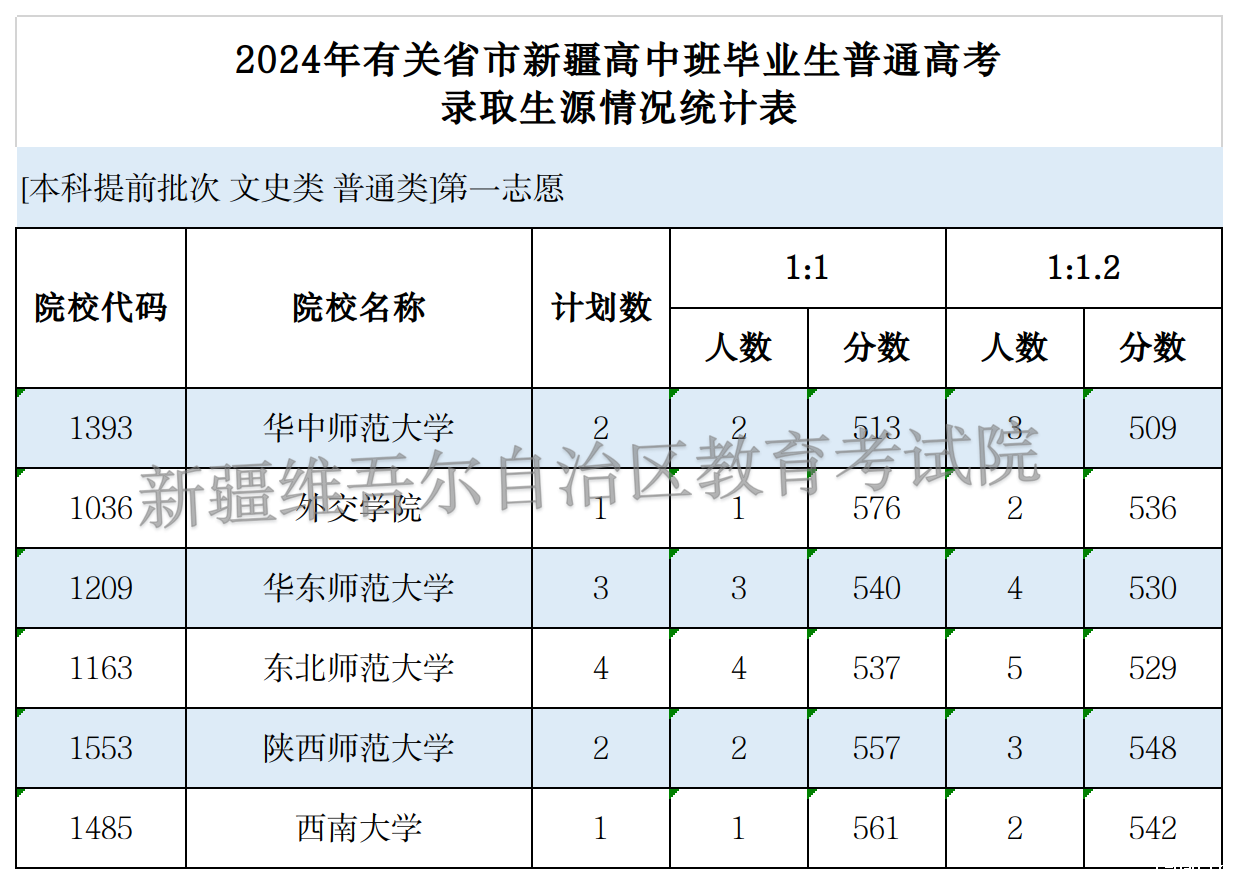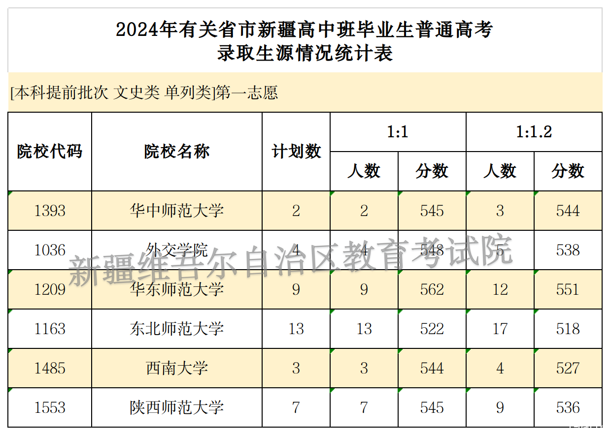 按照录取工作安排,2024年有关省市新疆高中班毕业生普通高考招生本科提前批次投档录取工作于7月19日开始,新疆教育考试院根据投档原则进行了投档,现将部分院校投档情况公布如下。